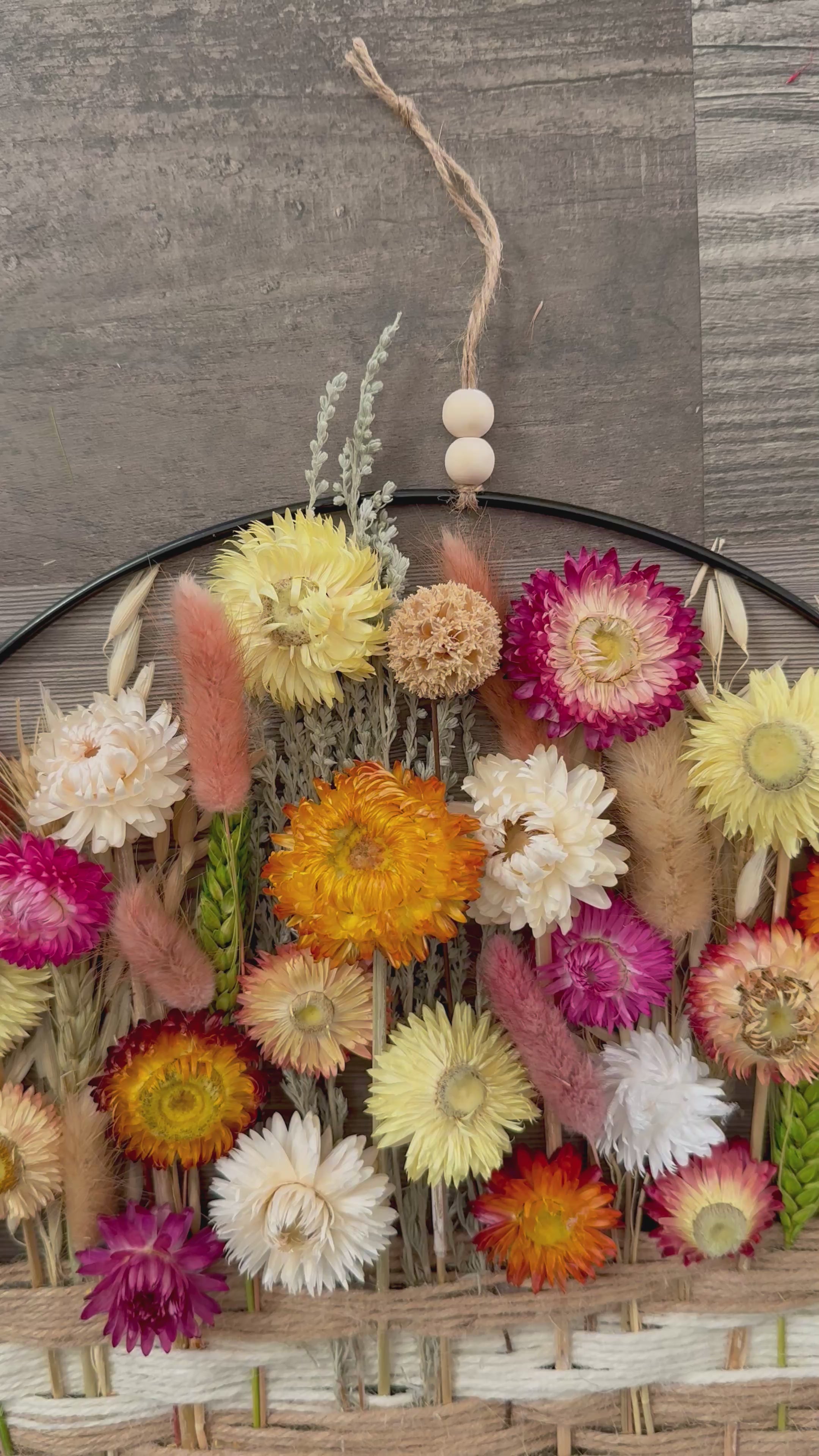 Black & Cream Dried Flower Wreath: Boho Farmhouse Wall Decor